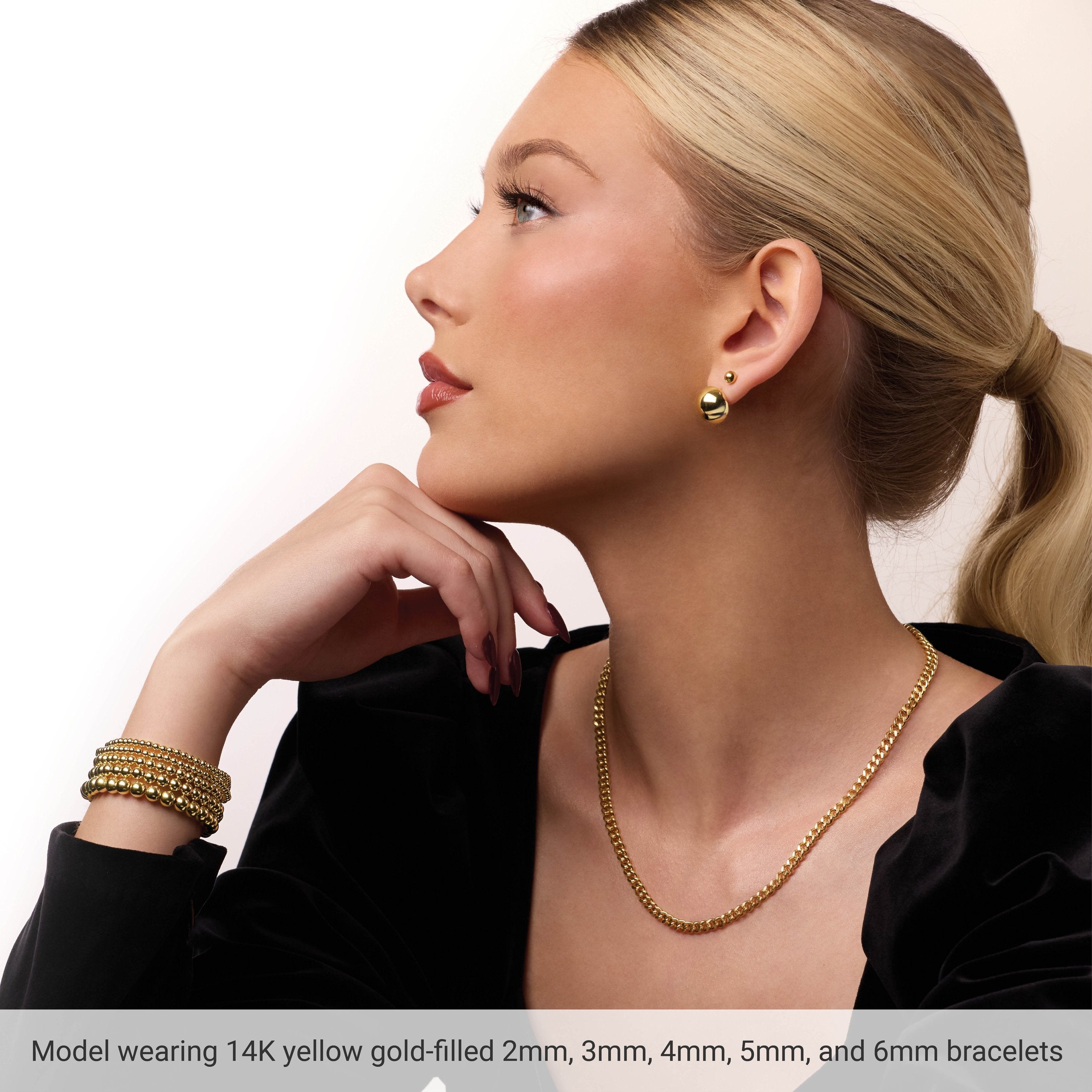 Brc999 / 14K Yellow Gold-Filled / 4 Mm / 6 1/2 In / Polished / Beaded Elastic Bracelet