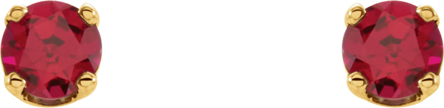 651643 / 14K Yellow / Set / Round / Imitation Ruby / Pair / 3 Mm / Threaded / Threaded Backs Included / 4-Prong / Polished / Youth Earrings With Backs