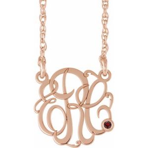 Collier monogramme 3 initiales en grenat imitation Mozambique rose 14 carats, 30 mm, 45,7 cm (18 pouces)