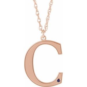 Collier en argent sterling plaqué or rose 14 carats avec initiale C en imitation alexandrite gravable, 45,7 cm (18 pouces).