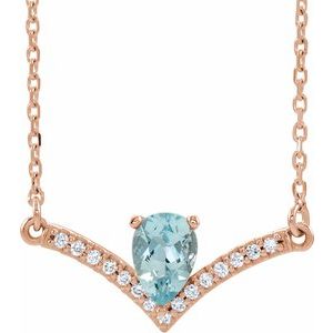 Collier de 40 cm (16 pouces) en or rose 14 carats, aigue-marine naturelle et diamants naturels (0,06 carat au total).