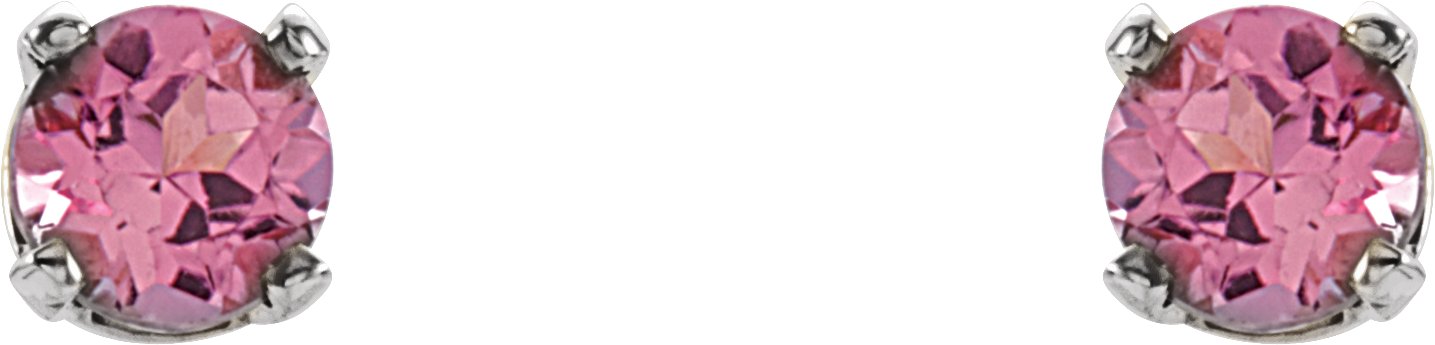 651643 / Sterling Silver / Set / Round / Imitation Pink Tourmaline / Pair / 3 Mm / Threaded / Threaded Backs Included / 4-Prong / Polished / Youth Earrings With Backs